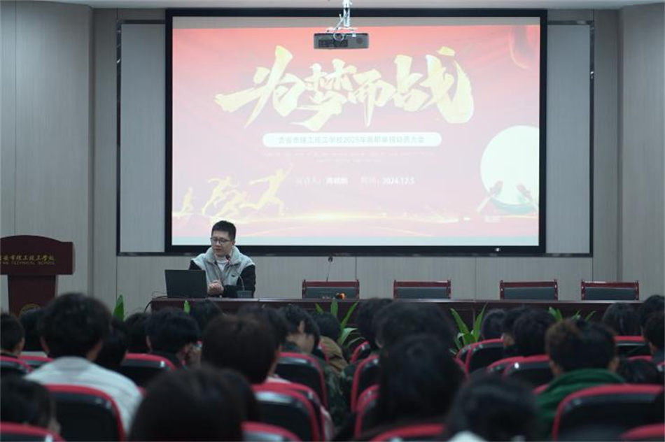 動(dòng)員大會(huì)擂戰(zhàn)鼓,厲兵秣馬蓄勢(shì)待發(fā)。12月6日上午,吉安市理工技工學(xué)校2025年高職單招考前動(dòng)員大會(huì)在行政樓多功能報(bào)告廳隆重舉行,學(xué)校教務(wù)處主任羅荔、副主任周岐鵬出席會(huì)議,部分22級(jí)報(bào)考學(xué)生參加動(dòng)員大會(huì)。