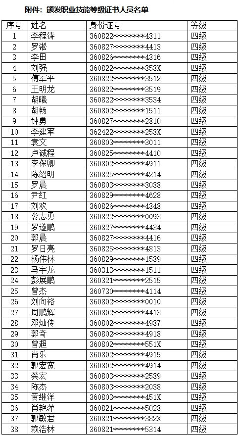 附件:頒發(fā)職業(yè)技能登記證書(shū)人員名單