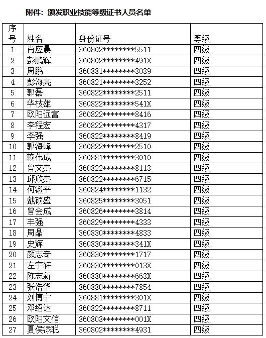 附件:頒發(fā)職業(yè)技能登記證書人員名單