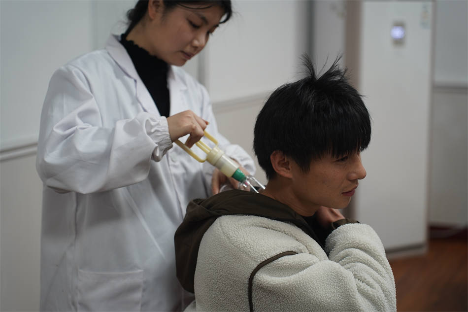 長期伏案工作容易導(dǎo)致頸椎病、關(guān)節(jié)炎、肩周炎等慢性疾病,這也是許多教職工面臨的健康困擾。針對這一問題,志愿者為教職工們提供了中醫(yī)理療、針灸、推拿、拔罐、艾灸、刮痧等多種治療服務(wù)。