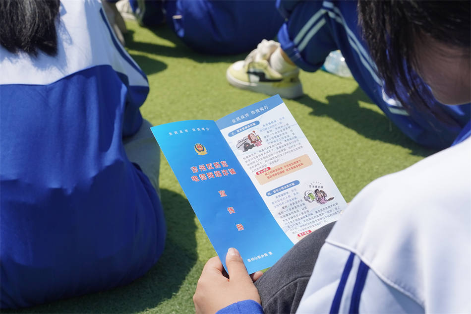 宣講間隙,民警們穿梭人群,將一份份圖文并茂的防詐宣傳單遞到學(xué)生手中。宣傳單上,各類詐騙方式用醒目標(biāo)題標(biāo)注,配合漫畫解析詐騙場(chǎng)景,成為同學(xué)們手中的“防詐指南”。