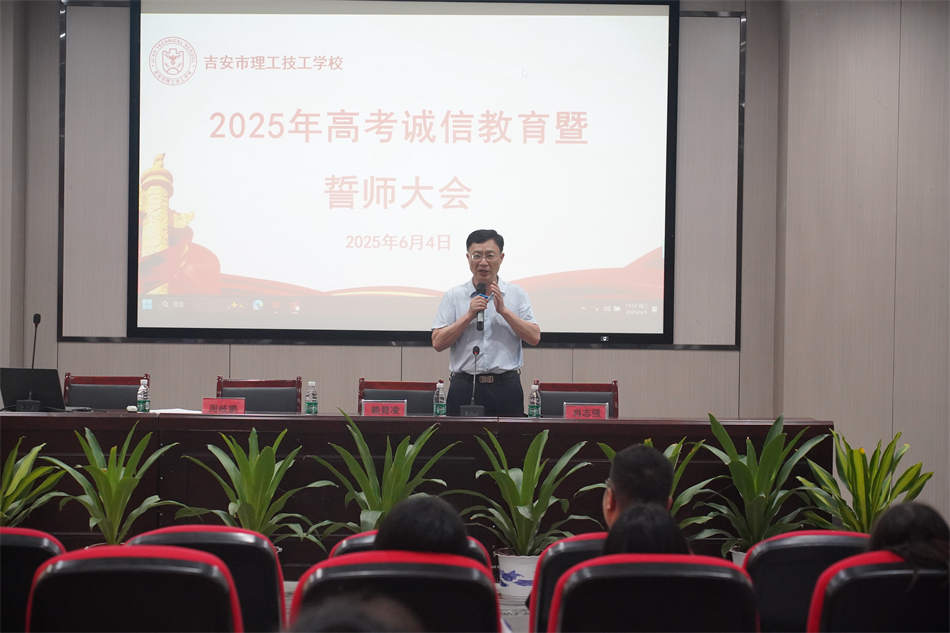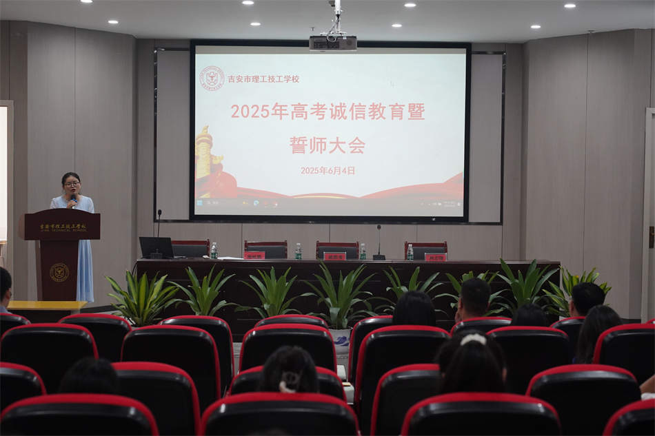 隨著2025年高考的日益臨近,6月4日下午,吉安市理工技工學(xué)校的綜合樓報(bào)告廳內(nèi)隆重舉行了2025年高考誠(chéng)信教育暨誓師大會(huì)。執(zhí)行校長(zhǎng)賴碧凌、教務(wù)處副主任周岐鵬、學(xué)工處副主任肖志強(qiáng)、班主任余盤盤及22級(jí)師生齊聚一堂,共同為即將踏上高考考場(chǎng)的理工學(xué)子們加油鼓勁,奏響青春奮進(jìn)的鏗鏘戰(zhàn)歌。