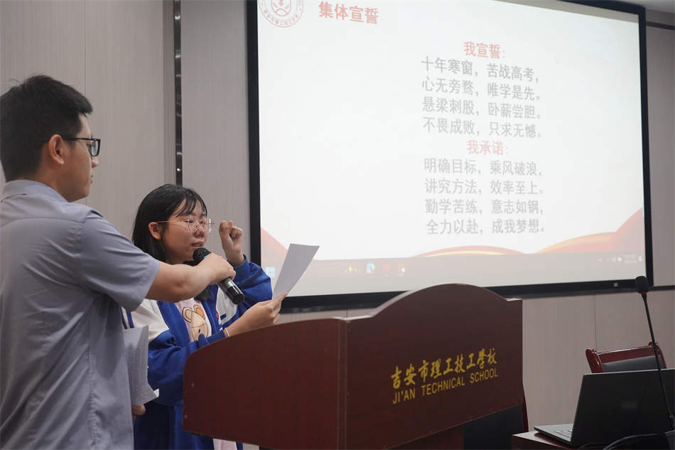鏗鏘有力的誓言在報(bào)告廳內(nèi)回蕩,彰顯出理工學(xué)子們決勝高考的堅(jiān)定信念。
