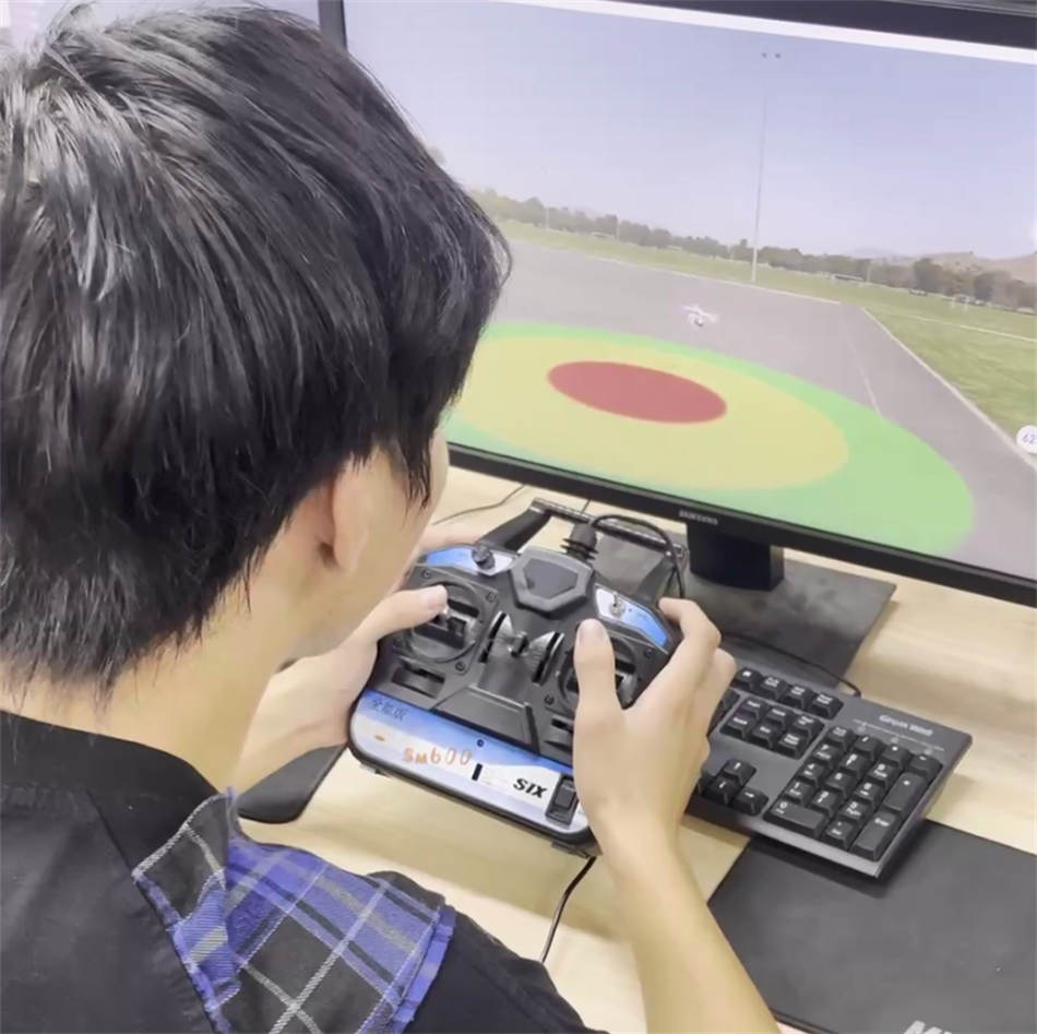 實(shí)訓(xùn)室內(nèi),學(xué)生們手握標(biāo)有“Sm600 SIX”字樣的專業(yè)遙控器,目光緊緊鎖定電腦屏幕——屏幕上,虛擬無人機(jī)在模擬機(jī)場跑道旁的靶標(biāo)區(qū)域穩(wěn)定懸停,紅色靶心清晰可見。指導(dǎo)教師結(jié)合“八面懸停”等高難度科目,現(xiàn)場演示參數(shù)校準(zhǔn)、姿態(tài)調(diào)整等調(diào)試技巧。學(xué)生小李在教師的指導(dǎo)下,經(jīng)過多次模擬操作,成功完成了虛擬無人機(jī)的懸停控制與軌跡修正。他分享道:“模擬器將抽象的飛行原理轉(zhuǎn)化為直觀的視覺反饋,讓我們在安全的虛擬環(huán)境中反復(fù)練習(xí),既加深了對操作邏輯的理解,也有效降低了未來實(shí)飛時的風(fēng)險。”據(jù)了解,小李同學(xué)當(dāng)天單次模擬飛行時長達(dá)8分鐘,總訓(xùn)練時長累計(jì)超過1小時20分鐘,充分體現(xiàn)了模擬訓(xùn)練的高強(qiáng)度與針對性。