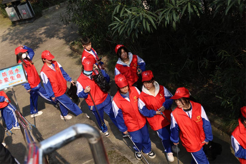 青年志愿者們隊(duì)列集合,手持鉗子、掃帚、垃圾袋等工具來(lái)到贛江邊,她們分工協(xié)作互相配合,提著垃圾袋對(duì)沿河兩岸進(jìn)行逐段式排查、“地毯式”清理,撿拾垃圾袋、瓶罐、白色污染物垃圾。
