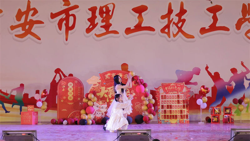 21級百度云二班和22級幼教班的同學聯(lián)合表演充滿青春活力的舞蹈《串燒》、《冬日》,婀娜多姿,配合默契。