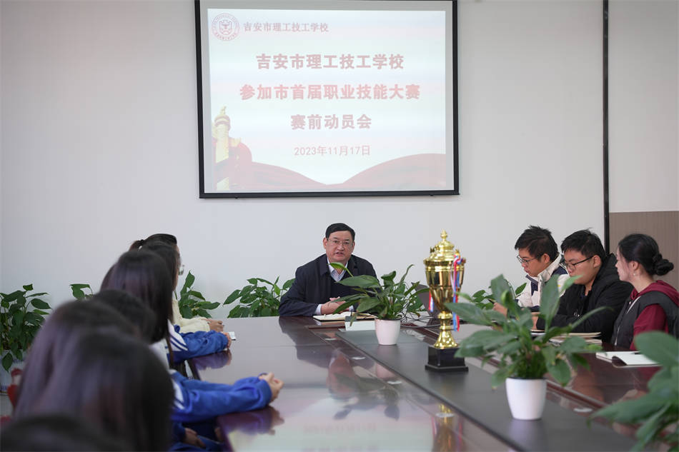 2023年吉安市第一屆職業(yè)技能大賽即將拉開序幕,為了迎接比賽的到來,做好賽前準(zhǔn)備工作,11月17日上午,吉安市理工技工學(xué)校在綜合樓會議室召開技能大賽賽前動員會,以表斗志,以壯士氣。執(zhí)行校長汪榮華、參賽項目領(lǐng)隊、指導(dǎo)老師及選手、教務(wù)處相關(guān)負(fù)責(zé)人參加了本次會議。