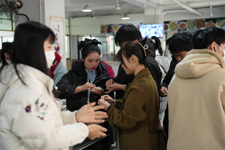 在活動(dòng)過程中同學(xué)們圍在一起,相互配合,分工合作,歡聲笑語不斷,雖然很多同學(xué)是第一次包餃子的“新手”,動(dòng)作略顯笨拙,但在其他同學(xué)的帶領(lǐng)下,包出來的餃子還是有模有樣,可以感受到大家都享受在其中、沉浸在其中,此時(shí)的理工校園已然成為一個(gè)其樂融融的大家庭,討論聲、歡笑聲交錯(cuò)進(jìn)行,冬至的溫暖與快樂充溢在每個(gè)人的心里,也包進(jìn)了每一個(gè)玲瓏可愛的餃子。