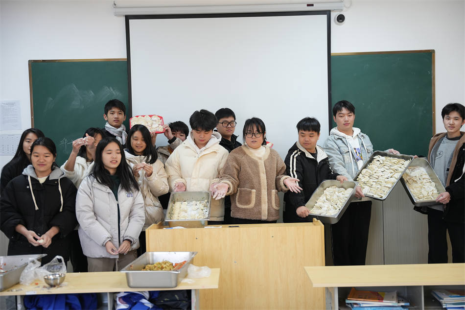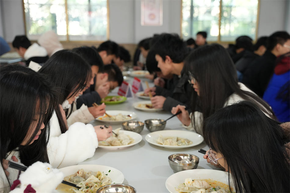 這次冬至包餃子活動(dòng)不僅豐富了同學(xué)們的課余生活,增強(qiáng)了班級歸屬感,也讓同學(xué)們體會到了勞動(dòng)的快樂,品嘗到了美味的水餃,亦能借此機(jī)會讓同學(xué)們放松心情,緩解學(xué)習(xí)帶來的壓力。一個(gè)個(gè)香噴噴的餃子里包著屬于理工學(xué)子的感動(dòng)與溫暖,讓冬日里的校園,又多了一份溫情和暖意。