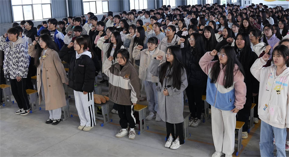 同學(xué)們的錚錚誓言在校園中縈繞不絕,每一聲吶喊都表現(xiàn)出同學(xué)們沖刺考試的堅(jiān)定信心和必勝信念。
