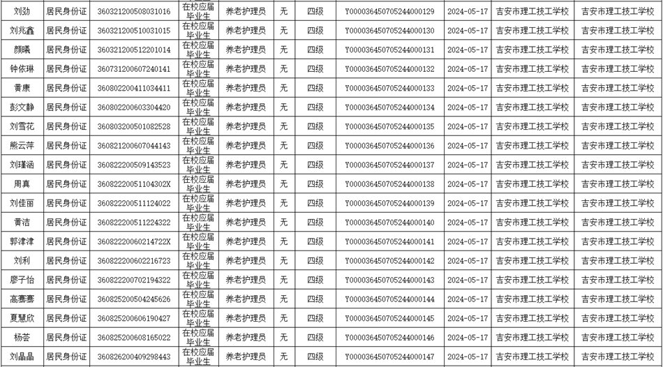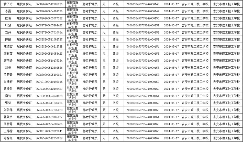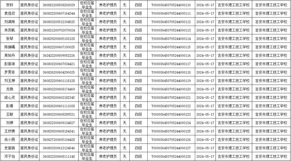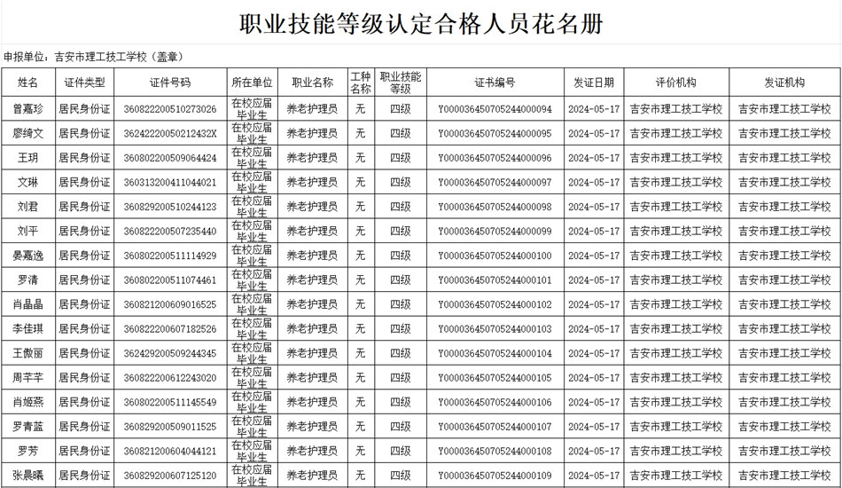 按照《關(guān)于開(kāi)展“互聯(lián)網(wǎng)+職業(yè)技能等級(jí)認(rèn)定”試點(diǎn)工作的通知》(贛人社字〔2020〕397號(hào))精神。我校于2024年4月1日開(kāi)展了養(yǎng)老護(hù)理員等級(jí)認(rèn)定,共76人(四級(jí)),通過(guò)認(rèn)定考核74人?,F(xiàn)對(duì)認(rèn)定考核合格人員進(jìn)行公示(名單附后):