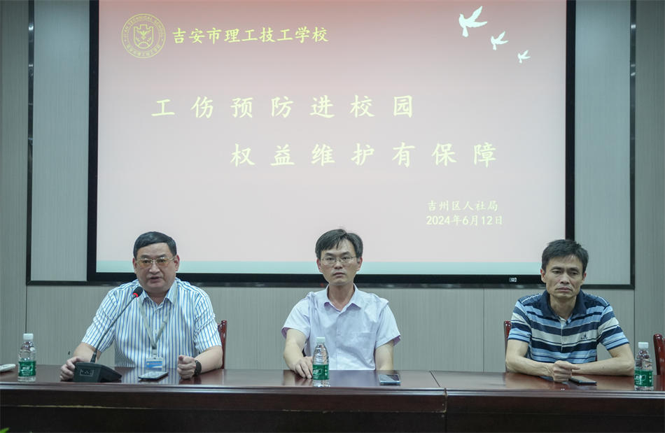 工傷預(yù)防宣傳進(jìn)校園,旨在將傳統(tǒng)主要面向企業(yè)職工的工傷預(yù)防宣傳前置到校園中,把工傷預(yù)防理念、知識和技能送到學(xué)生身邊,為將來走上實(shí)習(xí)和工作崗位的學(xué)生群體筑牢職業(yè)傷害預(yù)防的第一道防線。2024年6月12日,由吉州區(qū)人力資源和社會保障局舉辦的“工傷預(yù)防進(jìn)校園,權(quán)益維護(hù)有保障” 專題講座走進(jìn)吉安市理工技工學(xué)校,為同學(xué)們帶來了一場內(nèi)容豐富的知識分享會。學(xué)校執(zhí)行校長汪榮華、學(xué)工處及師生代表參加了本次講座。