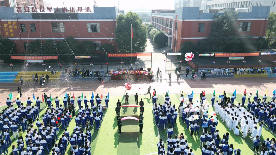 隨著運(yùn)動(dòng)員進(jìn)行曲的激昂旋律響起,吉安市理工技工學(xué)校第四屆校園趣味運(yùn)動(dòng)會(huì)開(kāi)幕式正式拉開(kāi)帷幕。各班級(jí)方陣與裁判員方陣依次步入會(huì)場(chǎng),他們身著統(tǒng)一的服裝,步伐矯健而有力,精神飽滿地朝著操場(chǎng)中央邁進(jìn)。每個(gè)班級(jí)都精心策劃了別出心裁的表演,每一個(gè)節(jié)目都散發(fā)著青春的活力與無(wú)限的創(chuàng)意,如同五彩斑斕的畫(huà)卷,在觀眾眼前徐徐展開(kāi),贏得了現(xiàn)場(chǎng)觀眾此起彼伏的熱烈掌聲與歡呼聲。