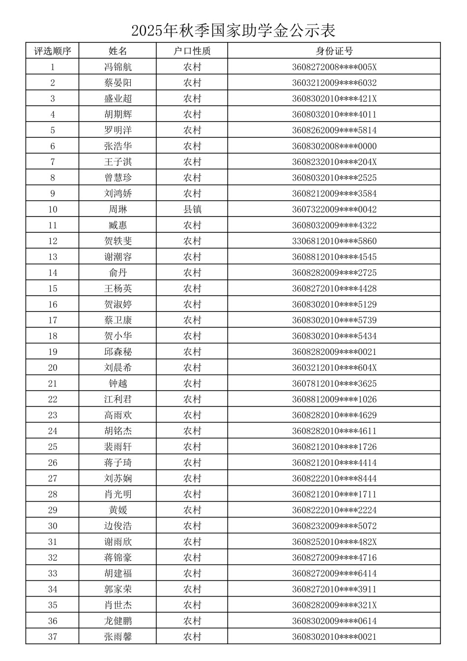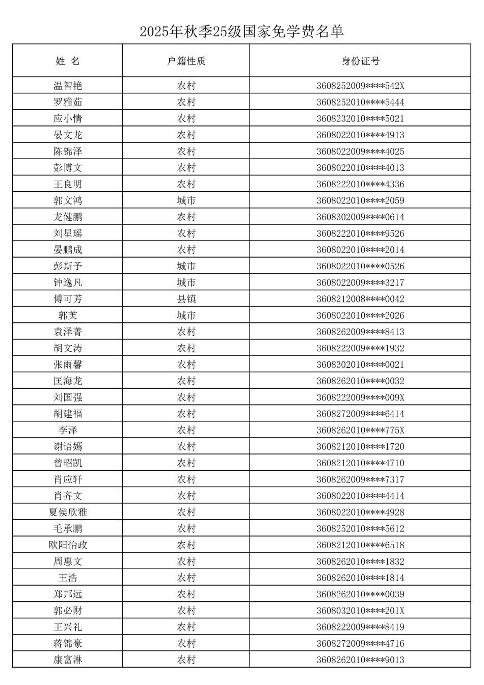 吉安市理工技工學(xué)校2025-2026學(xué)年免學(xué)費(fèi)、助學(xué)金名單已公布,如有疑問請(qǐng)于公示日期內(nèi)向校資助中心反映。