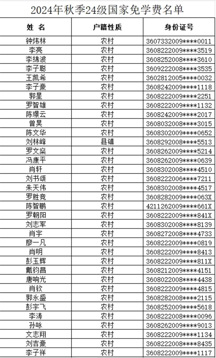 吉安市理工技工學校2024-2025學年上學期免學費名單已公布,如有疑問請于公示日期內(nèi)向校資助中心反映。